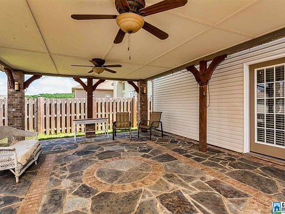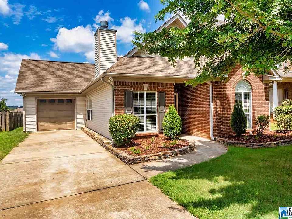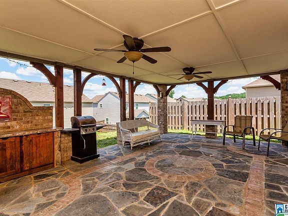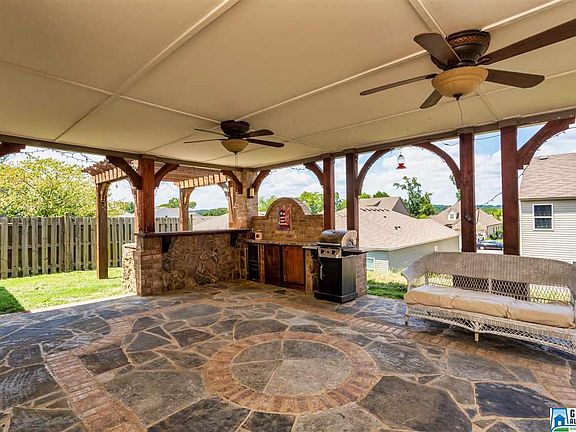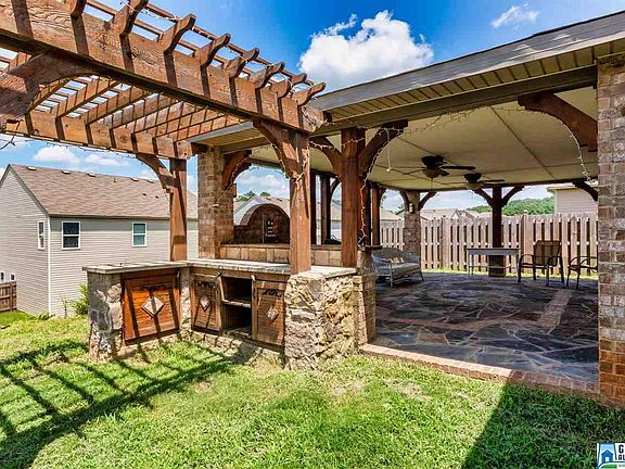 NOTHING ELSE LIKE THIS ONE IN ALDEN GLEN! This home features a wonderful OUTDOOR ENTERTAINMENT area, with CEDAR Beams, ROCK Floor, OUTDOOR Wine FRIDGE, CONCRETE COUNTERS and so much more! Notice the custom rock flower beds as you walk to the front door, around the tree, and along the driveway! This home features an open floor plan with the kitchen open to the living area, separated by a high breakfast bar. Be sure to check out the customized pantry with accordion style shelves, doubling the usable pantry space, custom barn door in the bonus room, hard surface flooring, NEW CARPET, and FRESH Paint. The bonus room would make a great reading nook, study or office! Super low maintenance yard, brick and vinyl siding exterior! Oh, and the recently added custom blinds remain.