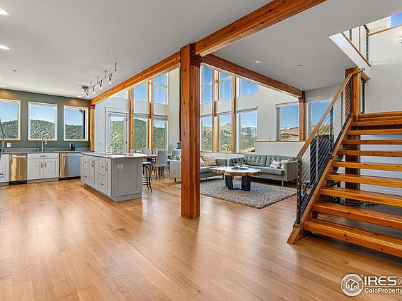 Enjoy room to roam and awe-inspiring views from this serene mountain home set on five acres. Perched high above the valley, yet less than 20 minutes from downtown Boulder, this luxurious custom retreat features soaring ceilings, amazing walls of windows, incredible natural light, and high-end appointments. There are beautiful wood floors with radiant heat and four mini-splits to provide air-conditioning. These units can even be operated remotely via smartphone. At the heart of the home's open floor plan, you'll find a well-equipped kitchen with copious cabinet storage, lots of counter space and premium stainless appliances. The primary suite is sure to impress with views for miles, a spa-like ensuite bath, and a generous walk-in closet. From the custom metal railings to the remote-operated window blinds, Nest CO meters, and CenturyLink DSL internet, no detail was overlooked in creating this incredible sanctuary. To experience foothills living like you've only dreamed about, schedule your showing today.