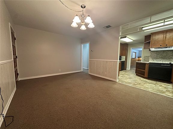 Step into this charming 2 bedroom, 1.5 bath home featuring a classic front porch and a spacious living/dinning area with built-in cabinetry. The kitchen, truly the heart of the home, offers plenty of room for cooking and gatherings. Two cozy front bedrooms share a full bath with a stand up shower, while a convenient half bath is tucked away off the additional living area. This home sits across the Early Childhood Center, offering convince and comfort. Outside, enjoy a detached garage perfect for storage and hobbies. With its warm character the property is ready to welcome new tenants.
