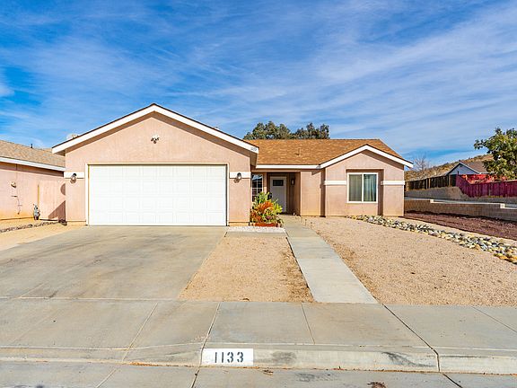 Welcome to this stunning single-story modern home, designed with a versatile layout and a range of stylish upgrades. Nestled on a spacious corner lot of over 0.25 acres, this property combines comfort with convenience. This home features three bedrooms and a fourth bonus room that could be a 4th bedroom! As well as two full bathrooms! As you step inside, the open living room welcomes you with vaulted ceilings and many windows, creating a bright, airy atmosphere. The layout flows effortlessly into a secondary living/dining area with a cozy fireplace. The kitchen is a chef's dream, showcasing upgraded granite counters with ample space for meal preparation and casual dining. An eat-in bar is an inviting feature for quick meals or socializing while cooking. The soft-closing cabinets, adorned with crown molding and modern hardware, add a touch of luxury. Upgraded lighting and stainless steel appliances ensure functionality meets this culinary space's style. The main bedroom is spacious and features an ensuite bathroom equipped with dual sinks, providing added convenience. The additional two bedrooms are generously sized, offering plenty of space. The large bonus room can easily serve as an additional bedroom, home office, or playroom, enhancing the home's versatility. The expansive backyard resembles your personal park, providing a private retreat. A covered patio offers a perfect outdoor dining or relaxation spot, while the in-ground fire pit creates a cozy gathering place for those cooler evenings. The huge side yard has an RV gate, allowing ample space for RV parking & all the toys! This remarkable home is ideally located next to Edwards Air Force Base, making it an excellent choice for those seeking proximity to work and community amenities.
