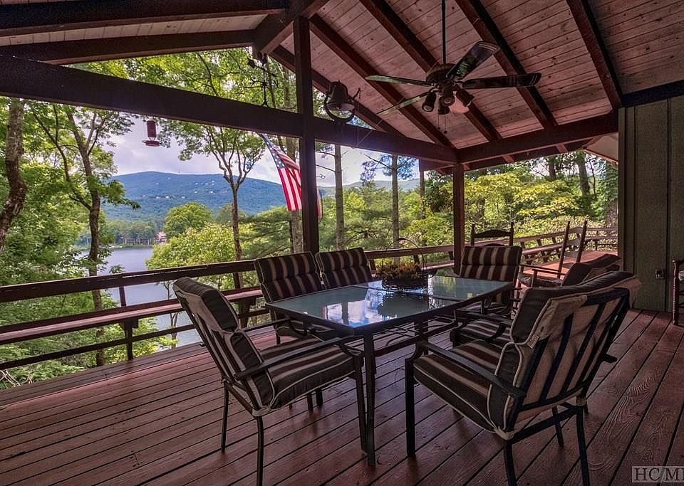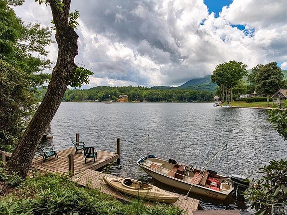 Walk out on your covered deck and enjoy the cool mountain air and the panoramic views of Lake Toxaway and Toxaway Mountain. 103' of lake frontage with private dock and room for a boat house. Classic 3000 square foot lakefront home.with great potential on the shores of North Carolina's largest private lake . Large family room with beamed ceilings and stone fireplace. 3 bedrooms, 2 baths on the main level and lots of finished living space on the lower level including another large family room, fireplace, wet bar with wine cooler, all opening out to your beautiful lake access. Two car carport can be converted to a garage or additional living space. Home is located within a 1 hour drive of Asheville airport.. There are endless outdoor activities close by including the towns of Sapphire, Highlands and Cashiers. Great opportunity, must see to appreciate.