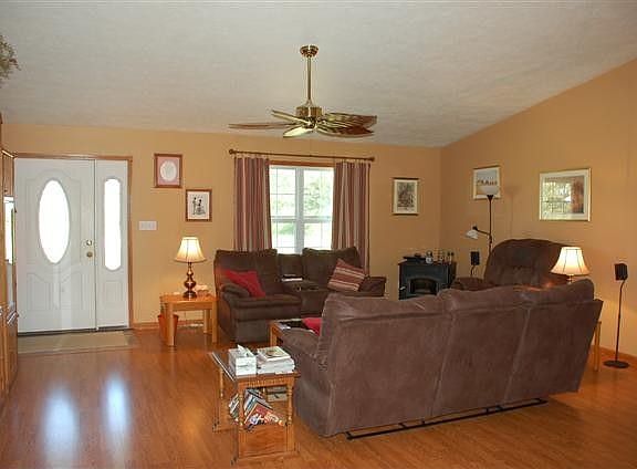 AWESOME 3 BEDROOM 2 BATH CUSTOM HOME ON 75 ACRES - BEAUTIFUL PRIVATE SETTING - MOSTLY PASTURE - SPRING FED POND - WET WEATHER CREEK - 2.5 MILES OF TRAILS. HOME FEATURES AN OPEN FLOOR PLAN - VERY LARGE COUNTRY KITCHEN - BREAKFAST BAR - VAULTED CEILINGS - SPLIT FLOOR PLAN - ARCHED DOORWAYS - PELLET STOVE - COVERED FRONT PORCH - LARGE ENTERTAINING BACK DECK WITH POOL AND HOT TUB - 2 CAR ATTACHED GARAGE - WALKIN CLOSETS - 30 X 50 INSULATED SHOP!
