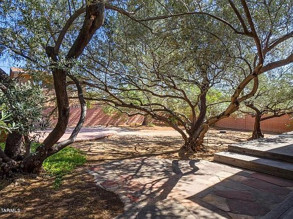 Pristine burnt adobe home in sought after area near U of A and downtown. Set back on the lot w/a circular aggregate driveway & charming front porch. A custom front door leads into the bright & open living room w/expansive built-in wood cabinets/bookshelf. The kitchen has a solid oak buffet for additional storage, granite counter,SS GE Profile 4 Burner gas oven/stove, two skylights w/windows that open. The Family room has a built-in oak bookshelf & opens to the large private backyard w/several mature trees & brick area for entertaining. This special home has #2 Red Oak hardwood floors t/out, solid core doors, multiple ceiling fans, plantation shutters. 3 stone fireplaces, zoned cooling.