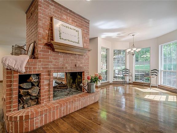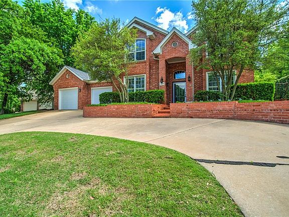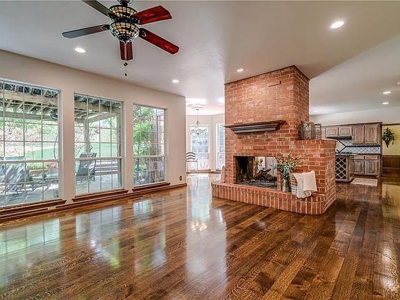 Own a piece of heaven in east Edmond - Best location around! 1/4 acre+ of old growth trees, prof landscaping & relaxing pergola. Nothing but nature views & room for a pool! Tons of sunny windows & views. Downstairs study, fml living, fml dining & double sided wood burning fireplace hearth room in kitchen. Extra long garage w storage. This home has a stately presence w walk-up brick steps & large landscaped beds. Grand entry w winding staircase. Solid pecan floors & custom trimwork. Remodeled in 2006 w kitch granite & SS appliances. Upstairs 4 bdrms - all with amazing views & walk-in closets. Convenient utility room upstairs.vVictorian style custom designed bathroom features 14 karat GOLD faucets & shower head, antique vanities, French antique chandelier & local artist etched glass window. Prestigious Fox Lake community features easy access to I-35, community pool and playground.
