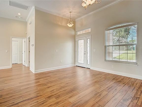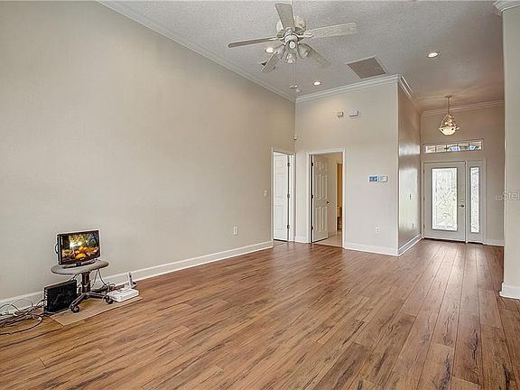 Set on an elevated area in Dunhill at Errol Estates, this property has stellar views of the community. A backyard covered lanai and spacious sundeck are the perfect spots to enjoy the scene, and the back lawn has wrought iron fencing for unobstructed views. Low-maintenance landscaping wraps around to a front yard with a paver courtyard entry that leads guests to a memorable interior. The floor plan includes 3 bedrooms, 2.5 baths, formal living & dining rooms, family room, breakfast nook, kitchen with granite counter tops & SS appliance package, interior laundry, and a 2-car garage. The bedrooms are organized in a split plan arrangement, and the master's suite has direct access to the lanai & sundeck. Textured laminate wood floors and 18" ceramic tiles are impressive upgrades that add sophistication, and the living areas have sunlit windows and vaulted ceilings for a spacious feel. This property has a newer A/C, roof, landscaping & double pane windows. The gated community of Dunhill at Errol Estates is minutes to convenient roadways, state parks & natural springs, top rated schools, shopping/dining & the beautiful Field of Fame Recreational Sports Complex. Great home, Great community, Great life. Explore your new home today!
