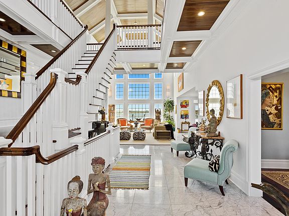Magnificent waterfront contemporary home in the heart of Hewlett Harbor. This 7000 square foot was built from the ground up in 2005. The home has floor to ceiling windows everywhere and the open water views are spectacular. The grand entry welcomes you with 25 foot ceilings that mesmerize. No expense was spared when this home was built. The kitchen features Viking appliances and beautiful quartzite countertops. The butlers pantry was designed with fine dining service in mind. The master suite has two walk in rooms as closets, a pristine bathroom with soaking tub, gas fireplace and a private terrace that has its own hot tub. The home has everything, including radiant heat under every inch of flooring. This is a one of kind property with a spectacular 125feet of private beach