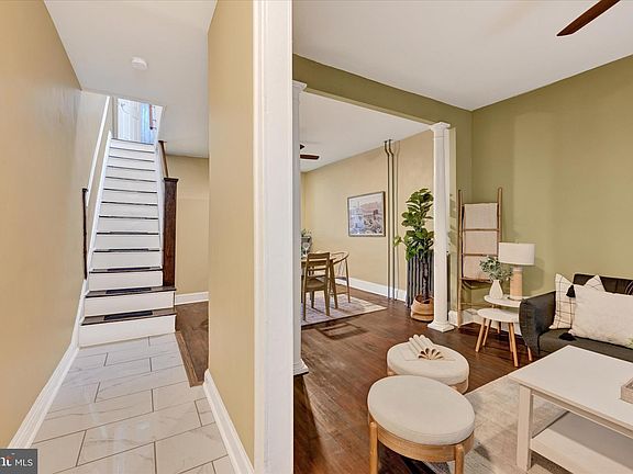 **Charming Baltimore Rowhome with Classic Details!** Welcome to 1133 Homestead Street, a delightful 2-bedroom, 1.5-bath home that perfectly blends historic charm with modern convenience. Step onto the welcoming front porch with an awning, offering the perfect spot to relax with your morning coffee. Inside, the main level boasts formal living and dining rooms, both featuring beautiful hardwood flooring. The spacious kitchen is a chef’s dream with stainless steel appliances, a breakfast bar, and access to the back porch—ideal for entertaining. A convenient half bath completes this level. Upstairs, a large landing area offers the flexibility to be used as a cozy sitting room or additional living space. Two generously sized bedrooms feature hardwood flooring and ceiling fans, while the primary bedroom is accented by a charming stained-glass window above the door. The lower level provides a large recreation area, perfect for a home gym, office, or entertainment space. Outside, enjoy the privacy of a fenced rear yard. Location Perks: Situated in the heart of Baltimore, this home is close to parks, local shops, and restaurants. Convenient access to major commuter routes makes getting around the city a breeze. Don’t miss your chance to own this character-filled gem!