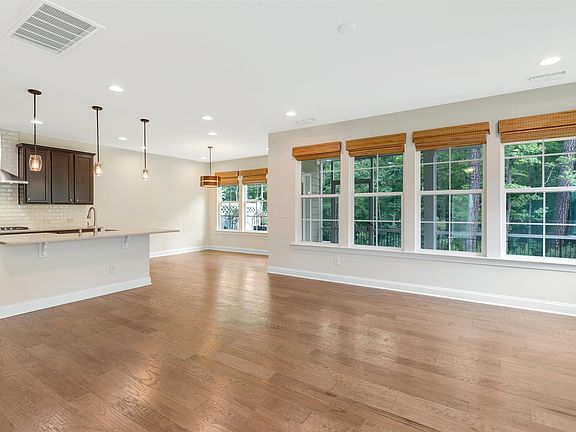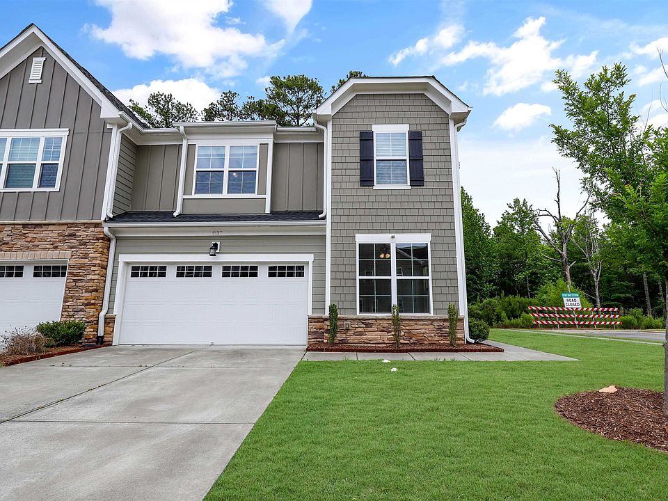 Immaculate End-Unit 4 bedroom, 3 full bathroom Townhome in a great location with lots of natural light! Close proximity to the new Apple Campus, RTP, greenway, and best schools. Built 2018, this like-new townhome offers an open floor plan with hardwood flooring and bamboo window shades. Gourmet kitchen with quartz countertop, large farm sink, walk-in pantry, top-of-the-line stainless steel appliances, and main level Guest Suite with a full bath. Large primary suite with luxurious bathroom overlooks the woods and has a generous walk-in closet. Two-car garage with overhead racks. Back of the house has a screened porch finished with teak wood tiles. Additional home features include water/energy-saving flex washer dryer, nest thermostat, nest security with 2 outdoor cameras, Yale lock, prewiring for home theater in loft, and smart lights. Move-In Ready!