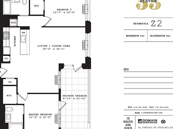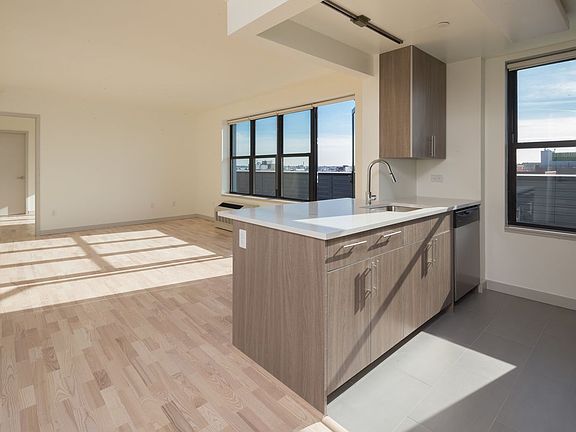 A penthouse dream! This unit is a large 2 bed/2 bath with an additional oversized private terrace with beautiful views. Very spacious and bright living space and hardwood floors throughout, kitchen island, ample closet space including a large walk-in closet and a washer/dryer inside the unit. We are a new luxury rental building located in Greenpoint, Brooklyn. Eleven33 is anchored in Brooklyn's most creative neighborhood for the arts, dining, entertainment, and shopping. With its sweeping skyline views of New York City and its rich, original history, Greenpoint is culture, commerce, and community, and Eleven33 is home. It's all in the details. Residences at Eleven33 keep your needs in mind and feature: -Quartz countertops and custom cabinetry in kitchens and baths -Dishwasher and microwave in each kitchen -High-end stainless steel and Energy Star-rated appliances -Stylish fixtures and oversized showers with subway tile in bathrooms -Designer lighting, finishes, and fixtures in each apartment -Full-size washers and dryers in most units -Oak hardwood flooring throughout -Custom, spacious closets throughout Building Amenities Include: -Grand lobby with high ceilings, full-time concierge and reception lounge -Resident lounge with media center, and entertaining kitchen -Huge courtyard with an outdoor kitchen featuring lush landscaping and ample seating areas for relaxing or entertaining -Furnished and landscaped rooftop terrace with sweeping Manhattan & Brooklyn views -Rooftop dog run -Fully equipped fitness center with the latest cardio, strength and CrossFit equipment -Workspace amenities including conference room, sound-proof phone booth, computer stations, complimentary high-speed WiFi, and hotspot printing and scanning services. -Free high-speed Wi-Fi throughout all indoor and outdoor common areas -Docking stations in each amenity area for a personalized music experience -On-site garage parking with direct building access, ZipCar, and ZipVan -Building Link system for packages, dry cleaning and valet notification -Smoke-free building Contact us for more information and to set up your private tour. We look forward to helping you find your new home at Eleven33.