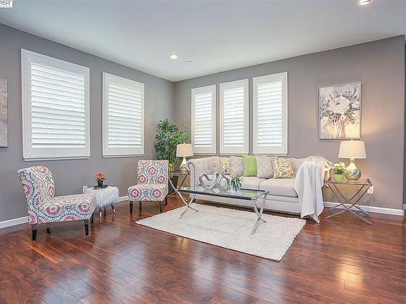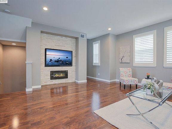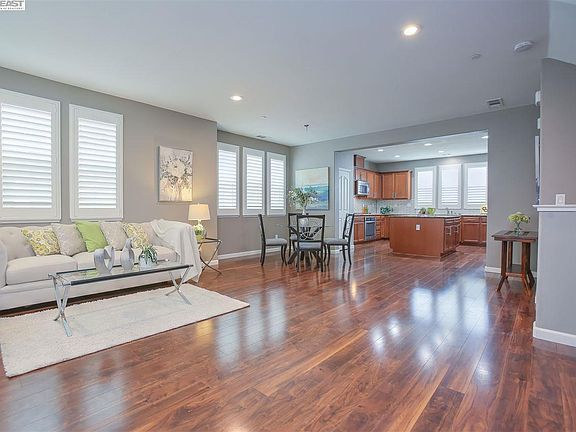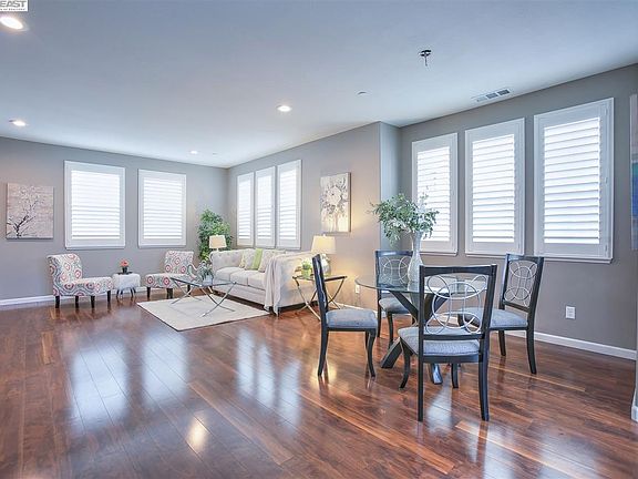 Gorgeous corner lot home, east facing allowing an abundance of natural sunlight into your home. This gorgeous town home is only 6 years young and is in immaculate condition! well maintained and turn-key ready for the new homeowners! Completely upgraded with only the latest, elegant trends. This beautiful home features an upscale kitchen with all stainless steel appliances and contemporary counter-tops, cabinetry & backslash. Find a cozy living room with a beautifully crafted accent stone wall, gas-burning fireplace to enjoy. Plantation window coverings on all the the dual pane windows, recessed lighting, central heating & cooling and so much more. This unit features 4 spacious bedrooms, and 3.5 bathrooms! one of the largest units available! Walking distance from Amtrak train station, Shopping, parks, school and 15 minute drive to Chabot College & Hayward State University. Easy commute to San Mateo Bridge, 880 & 580.