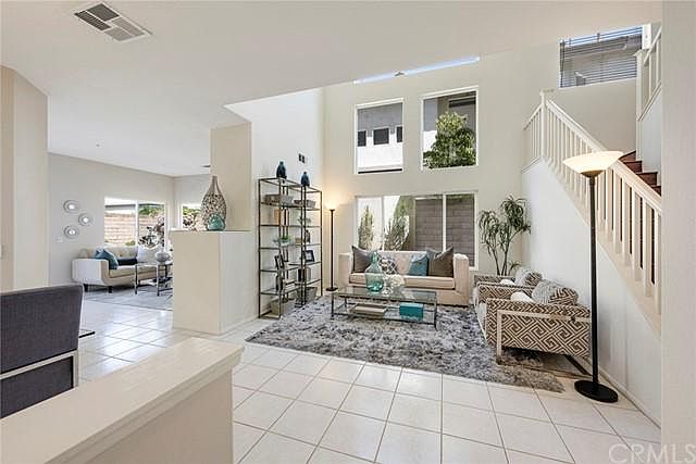Beautiful detached home in the gated community of Bella Vista. Very bright home with vaulted ceilings, tile flooring on the main floor and all wood floors on the second floor. 4 spacious bedrooms with 2.5 bathrooms. Two car direct access garage with full driveway. Great open kitchen with gorgeous granite counters opening to the spacious family room. Great master bedroom with vaulted ceilings and two closets, shower and tub.