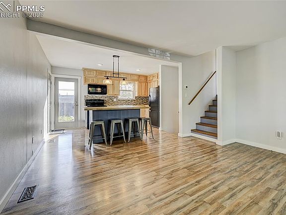 This adorable tri-level home has some wonderful, move-in-ready updates and decorative flair, all tucked away from busy roads in the quaint Park Meadows neighborhood. You'll love this wonderfully updated kitchen with hickory cabinetry and a contrasting ocean blue breakfast bar island with a butcher block counter. Solid-surface flooring throughout the home makes daily life and cleaning a breeze, and the kitchen & laundry appliances are all included. You'll find two bedrooms & a full, updated bathroom upstairs, all with low-maintenance flooring & plenty of sunshine. The lower level enjoys all above-ground windows in the family room, third bedroom, and the private half-bathroom attached to bedroom #3. It's a good sized lot with a massive tree in front and a back yard patio & swing that are just begging for your outdoor hopes and dreams, and a BRAND NEW CLASS 4 ROOF was installed which might save you hundreds on your homeowner's policy. The jewel of the neighborhood is the lovely Meadows Park, with its open sports fields, playground, and amazing views from Pikes Peak all the way to Cheyenne Mountain. You'll want to walk down the street to enjoy it regularly, and while you're there, check out the Meadows Park Community Center. Ask about the 3-D tour and assumable loan.