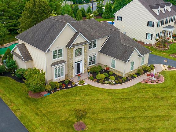 Welcome to this extraordinary luxury home in the coveted neighborhood of Laurel Pond, nestled within the prestigious community of Manheim Township. As you walk towards the home, you will find gorgeous landscaping with beautiful gardens. This 2-story residence offers a spacious layout with 4 bedrooms, 3 full baths, 2 half baths, and an impressive 4600+ square feet of living space. You will fall in love with the beautiful wooden stairs case with two story grand entrance & 9 ft ceilings. You will find beautiful crown molding throughout the house. Lots of natural light. Mud room/ laundry room leads to 3 car garage with work area/ shelves for storage and service door leads to side-yard. The heart of this home lies within the gourmet chef's kitchen, equipped with top-of-the-line Kitchen Aid gas cooktop, double wall oven, stainless steel appliances, and recessed lighting with granite counter tops and tile backsplash. The center island provides ample space for meal preparation, making it an ideal gathering spot for family and friends. Adjacent to the kitchen is a spacious dining room, perfect for hosting formal occasions. Gorgeous Michael Amini chandelier with tray ceiling. Just off of the dining room is a formal living room with tray ceiling, with recessed lighting & beautiful wall panels. The family room exudes warmth and charm, featuring a gas fireplace, elegant columns, and crown molding, Built-in shelves, over looking the pool area with large window, making it an inviting space for relaxation and entertainment. Working from home becomes a pleasure in the private office, thoughtfully designed with french doors to ensure peace over looking to beautiful garden views. Upstairs, the luxurious owner's suite awaits, offering a spacious retreat with a private bath designed for ultimate comfort. The bath boasts a walk-in tile shower, platform jetted tub, skylight, dual vanities, and a generous walk-in closet. Three additional bedrooms, each with ample closet space, offer versatility and comfort for family or guests. One of the bedrooms even boasts its own full bath, & window over-looking the pool area, adding to the allure of this remarkable home. The lower level is thoughtfully finished, providing a large rec area for recreational activities, bathroon, ample storage space, and a 2-zone heating/AC system . Step outside to the enchanting backyard, where a sparkling in-ground pool and spacious patio area create a picturesque setting for entertaining and relaxation. Don't miss the opportunity to experience the epitome of luxury living in Manheim Township. Minutes to Bent Creek Country Club and close to Lititz, Lancaster Airport, and downtown Lancaster. Schedule your private showing and immerse yourself in the elegance and comfort of this remarkable home today!