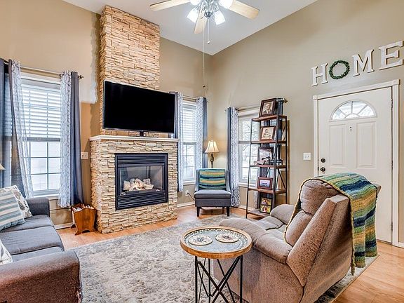 Nice Patio home close to resturants, shopping and more. Main floor Master with Private bathroom with shower, Large Jacuzzi tub and walk in closet. Spacious Dine in Kitchen With loads of Counter space, walks out to fenced yard and an entertaining deck area. Separate Main Floor Laundry. Powder Room 1/2 bath for guests. Living room has a gorgeous stacked stone gas fireplace. Upstairs is an office and 2 more bedrooms and a full bathroom.