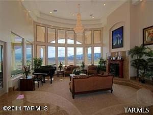 Majestic Villa constructed of the finest materials and design with GREEN features. Spectacular 360 Mt./City views on park like grounds. Grand living room, gourmet kitchen, 1500 sq.ft. 3 level theater,raised stage. Lighted, full size basketball/volleyball court. Every room is luxury, ideal for entertaining guests, dignitaries, corporate executives, or just family. Western retreat or B&B. Sweeping views of 5 mountain ranges from your veranda. 16 inch Rastra block construction filled with cement and steel. Absolutely no expense was spared.Custom Alder doors, imported Australian wood flooring, central vac, top end appliances, BASEMENT, Media/Movie Theater for 30, or use as a RECORDING STUDIO. Tucson is only 30 mins away!