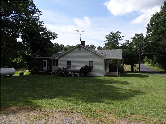 2 bedroom 1 bath home with lots of potential. 25 X 24 metal garage with garage door opener & propane wall unit for heat. Covered front porch, covered & screened in, 24 X 12 back deck. Vinyl sided and new roof in 2019. Oil furnace plus wall propane unit, central air. Hardwoods under carpet per seller. Two metal car sheds plus outbuilding. Public water & septic.
