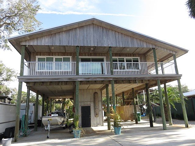 Beautiful waterfront home on private road. Unobstructed Gulf of Mexico views out front, seawall and new boat dock out back. Park your boat, RV and car underneath. Extensive storage abounds. New tin roof, windows and kitchen. This three bedroom 2 bath house has many custom touches, sure to impress. Views will never be obstructed. Located in a rare Aquaculture zoned waterfront neighborhood.