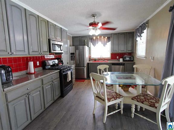 This 3-4 BR 2BA home in Saks features TWO kitchens, an in-ground pool, hot tub, and a HUGE workshop!! This property is truly a must see. Features include beautiful hardwood floors, which have recently be refinished. The Living Room is accented by rustic ceiling beams and a pretty stone fireplace, and the eat-in Kitchen offers nice "country style" soft blue cabinets, tiled back splash, gas stove and attractive counter tops. This home has two kitchens and two living areas - perfect for blended families or anyone needing a separate work space. Enjoy your own backyard oasis with privacy fenced in-ground pool area that offers a diving board, slide and hot tub area. Very large corner lot with 0.87 acres. Convenient location near Hwy 431. Call today for more information and to schedule your personal tour!
