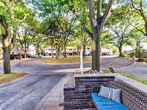 Welcome to this beautiful Spacious 1500sqft living space with 3 bed 2 bath model townhome, with 2 car private (not shared) driveway, custom interlocked patio/pathway, fenced backyard leads green space, private community kids park, no rear neighbours, high ceiling basement; one of a kind home, no other unit in complex has to offer. Prime LOCATION, across 5 Points mall, grocery, medical clinic, TD Bank, restaurants, dymon, shoppers, LA Fitness, library, trails, community centre, transit & more. 5min drive to 401/ 407/ GO. Clean complex, lowest maintenance fee & prop.tax in the vicinity, free visitor parking, meeting room, mail room, park & plenty of green space. Fee includes water, sewage, condo insurance, grass cutting, snow / garbage removal, roof, windows, garage and exterior. Freshly Painted, Roof Replaced 2019, Windows Replaced 2023. Cathedral ceiling living, newer kitchen, renovated basement & more! Move-in-ready. All appliances included! ***View The VIRTUAL TOUR***