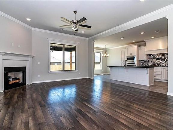 Smartly designed, open concept, split floor plan, one level home that incorporates designer ceramic tile in the wet areas, hardwood floors in the living areas, carpet in the bedrooms, granite counters through out, designer selected backsplash, gas fireplace in the living room, covered back porch that is plumbed with gas for your grill, and wired for cable and electric for your TV. Full stainless appliance pkg in kitchen and fully sodded with landscaped beds in the front yard.
