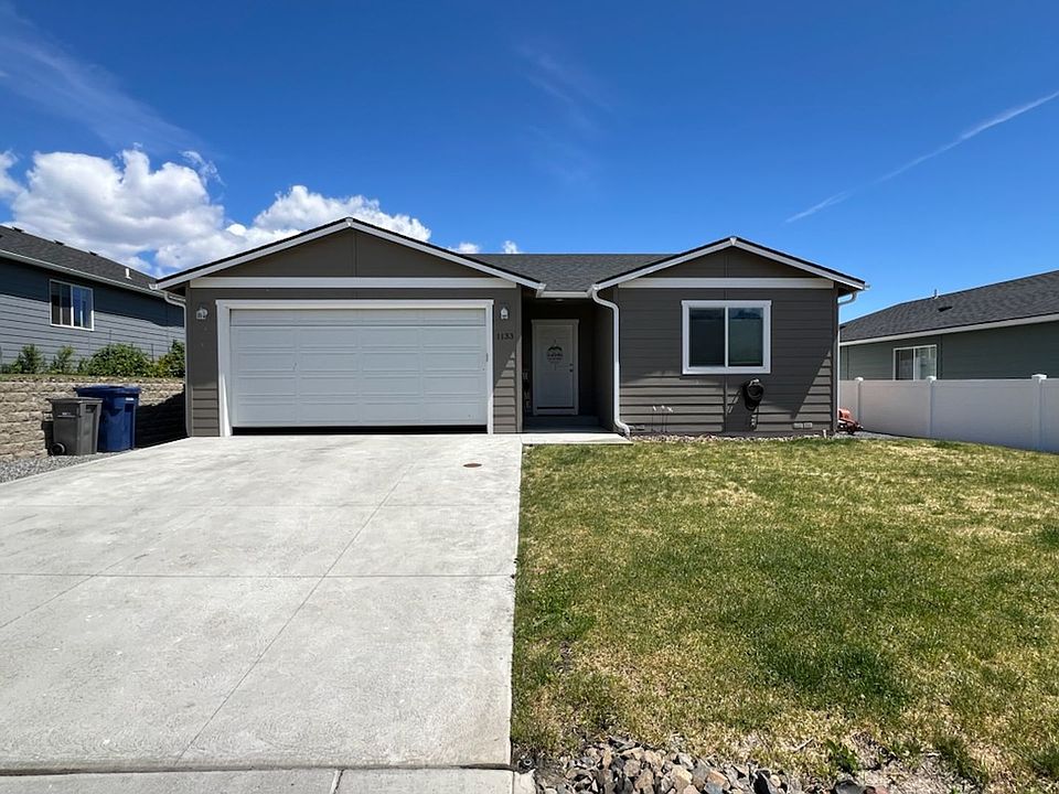 Welcome to this newer construction 3 bedroom, 2 bathroom rambler style home in East Wenatchee, WA! This charming property features a double garage, perfect for parking and storage. The fenced backyard provides privacy and security, ideal for outdoor activities. Stay comfortable year-round with central heat and air conditioning. The kitchen boasts quartz countertops and stainless steel appliances, perfect for cooking and entertaining. Energy Star windows with Low-E glass help to keep energy costs down. Landscaping included. Don't miss out on this fantastic opportunity to make this house your home! Contact us today for more information. *$400 nonrefundable cleaning fee PLEASE NOTE THAT RENT READY DATES MAY VARY