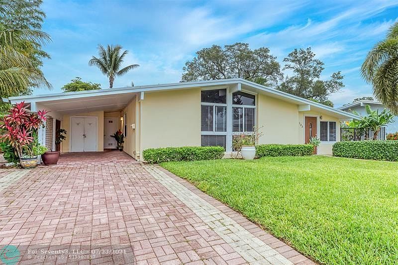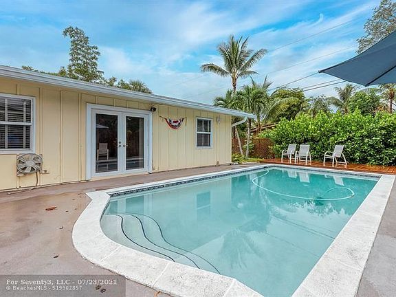 East Boca, walk to New Addison Mizner School! Spacious home with Hurricane impact windows and doors. Master bedroom has an extra room that could be den, sitting area or library. Vaulted ceilings, tile floors in living area and new A/C. Lots of closet space. Large swimming pool with great yard for entertaining with banana and coconut trees. Wide gate and brick patio on west side of the house. Shows great! Photos of bedroom 2 and 3 show carpet that will be replaced with new plank flooring.