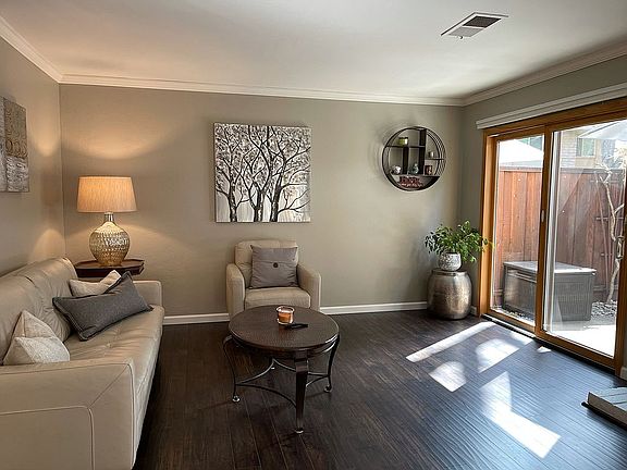 In sought after Westside Danville sits this 1114 SF townhome brimming with custom updates throughout. The open concept floor plan features a large dining and living area anchored by a gas fireplace, 2 spacious bedrooms with black out shades and custom built-ins in both closets and 1.5 newly remodeled bathrooms. Appointed with stainless steel appliances, pantry, induction stove, white shaker and slow close cabinets and granite counters, this galley kitchen is decked out for an inspired chef. With no expense spared updating the home in 2020, interior highlights include laminate wood and LPV flooring, new light fixtures and carpet, custom paint, quartz counters, crown molding, Ecobee Smart Thermostat and laundry closet with extra storage. Multiple Anderson sliders open to the fully fenced outdoor patio backing to the serene greenbelt, situated in one of the best locations in the development. Just steps from the front door is a designated 2 vehicle carport with 3 storage lockers as well as guest parking. Community amenities include a lush greenbelt, community pool and clubhouse. Easy access to 680 FWY and walkable to downtown Danville. This is a 10+.