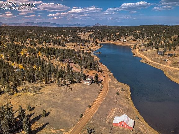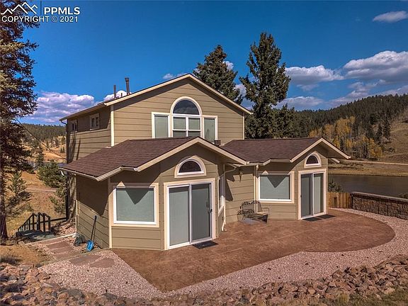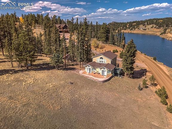 Come glimpse paradise on earth from this stunning Lakeside Mountain Home. Homes rarely offer the wow-factor provided by these Views of Natural Beauty. This 4-Bedroom, 4-Bathroom, custom-designed, one-of-a-kind home has a great floor plan and lots of windows. Built on a 1-acre Wooded Lot Overlooking the 35-acre Burgess Lake is listed at an Incredible Price. Every Room bursts with Breathtaking Panoramic Views of either Pikes Peak, the tranquil blue lake, majestic mountain ranges, the lush valley, or trees, nature, and animals. MAIN FLOOR features a fabulous Great Room, a Stone Fireplace, Beautiful Hardwood Flooring, and a walkout to an incredible Patio for entertaining or relaxing in the Lap of Nature. The spacious Gourmet Kitchen adjoins the Dining Area with a walk-out to the side deck overlooking the lake. The magnificent Master Suite with sweeping views of Pikes Peak from the bed has a sliding door to the Patio, a walk-in closet, and an adjoining 5-piece Bathroom with a jacuzzi tub, walk-in shower, double vanity, and ceramic tile floor. There is also a Flex/Crafts/Office Room, and a Full Bathroom on the main floor. UPSTAIRS you'll find a delightful 25'x13' Second Master Bedroom with a sitting area plus two more bedrooms and a Full Bathroom. All Bedrooms offer Gorgeous Views. GARDEN LEVEL Walkout BASEMENT has an enormous light and bright Family Room plus an Office with great views of the lake, a Full Bath, the Laundry Room, and radiant floor heating. The oversized 2-car detached Garage has plenty of storage. SPRING VALLEY is a beautiful and safe community to enjoy enviable Colorado living with a stocked 35-acre lake, 3-ponds including one for fly fishing, a walking trail around the lake, canoeing, kayaking, trout fishing, ice fishing, and ice skating for a modest membership fee in the Voluntary HOA. Roads are maintained and plowed by the county. Only a short drive to the quaint mountain town Divide, or 18-minutes to Woodland Park, and 45-minutes to Colorado Springs.