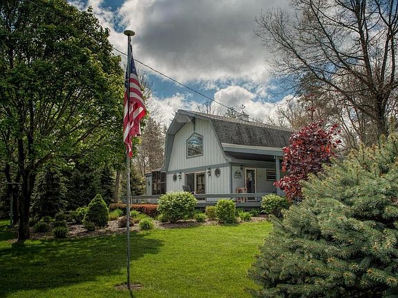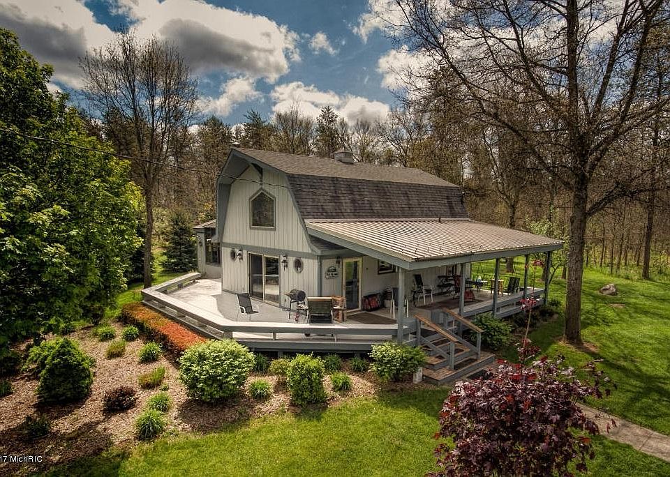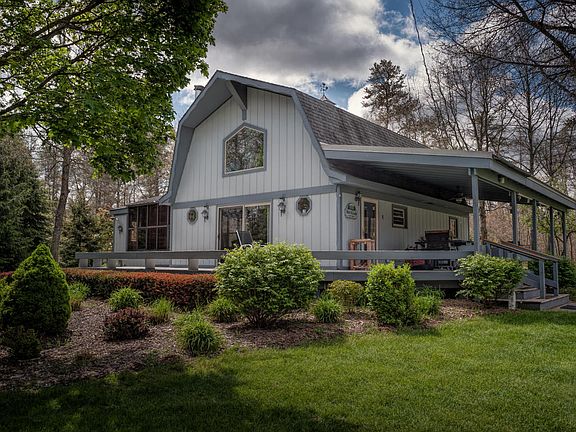 Welcome to Whitetail Lodge, a gorgeous year-round or recreational property featuring an immaculate 3 bedroom home and two pole barns on 3.5 acres. Meticulous, well maintained home with 12' wide wrap around porch, 8' slider, recent interior and exterior paint, newer furnace, well and windows. Living room offers cathedral ceilings, stacked stone fireplace and solid Honduras Mahogany mantle and trim. Matching 24x36 garage has plumbing, heat, electric and finished upstairs bonus room. A second 36x40pole barn is insulated with large overhead doors, Modine heater and electric. House sits off the road on wooded setting offering privacy for bonfires in the custom built fire pit. Exterior has inground sprinklers and circular driveway. Perfect in every way! Enjoy all that northern Michigan offers