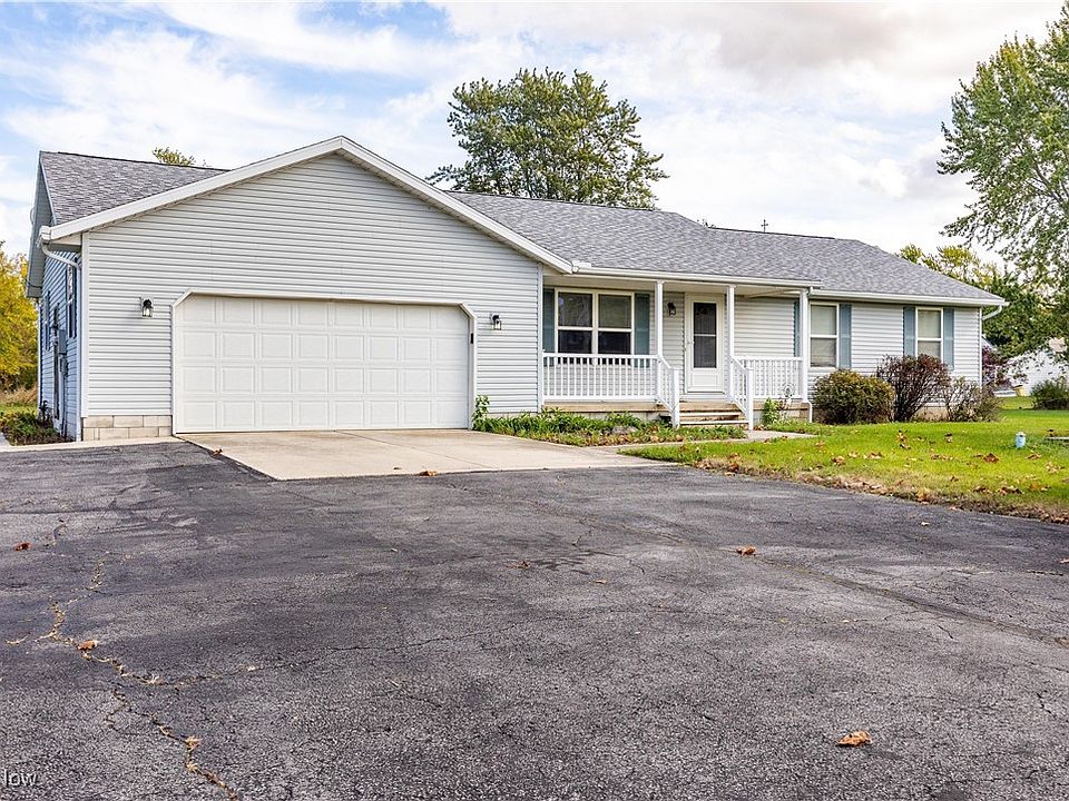 Welcome to this wonderful 3 bedroom 2 full bathroom ranch which sits on a private 1 acre lot. The heart of the home is the large eat-in kitchen, complete with a center island, plenty of counter space, and ample cabinetry—perfect for family meals or entertaining guests. A bright and airy front living room greets you, while the expansive back family room provides the perfect space to unwind or host gatherings. You'll also enjoy the added bonus of both a relaxing 3-season room, and large front porch, offering even more space to enjoy the surrounding nature. The spacious master suite features a full bathroom with both a shower and tub, and plenty of closet space. Two additional well-sized bedrooms with a full guest bathroom provide ample room for family or guests. Enjoy the convenience of the laundry area on the main floor. The unfinished basement is a blank slate for any rec room needs. New roof 2022. Hot water tank 2020. Propane tank is owned. Attached 2 car garage. For those with hobbies or business needs, the impressive 32x48 outbuilding is a standout feature. With two separate doors, built-in lift, electric, and the option to add a woodburning stove, this space is perfect for anyone. Whether you're looking for a peaceful retreat or a place to expand and grow, this home is a must-see! Call today to set up your showing!