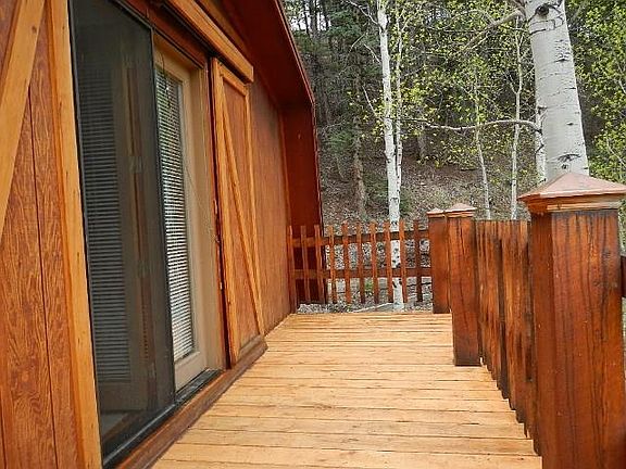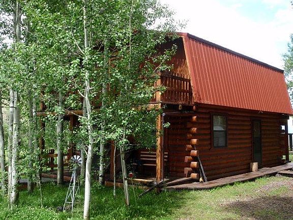 COLORADO ROCKIES VACATION RETREAT Charming 1120 square foot two story log cabin on 1 acre lot adjacent to a mountain stream. Enjoy year-round trout fishing and world class deer and elk hunting from your front door. Less than one hour drive to Wolf Creek ski area. Private access to tens of thousands of acres of forest service land for hiking, camping, fishing, hunting, and ATV riding. Abundant wildlife. Year-round access; only 1/2 mile from paved county road, giving privacy yet easy access. Totally surrounded by aspen trees. Two bedrooms and 1/2 bathroom located upstairs; kitchen, living room, and full bath located downstairs. Master bedroom opens onto a private deck with spectacular views of snow capped peaks. Aspen tongue-groove on main floor. New metal roof. Has both propane and wood heat: the new wood stove has a thermostatically-controlled blower. New gas range. New small log shop building with electricity. Separate observation deck perfect for entertaining (you coul