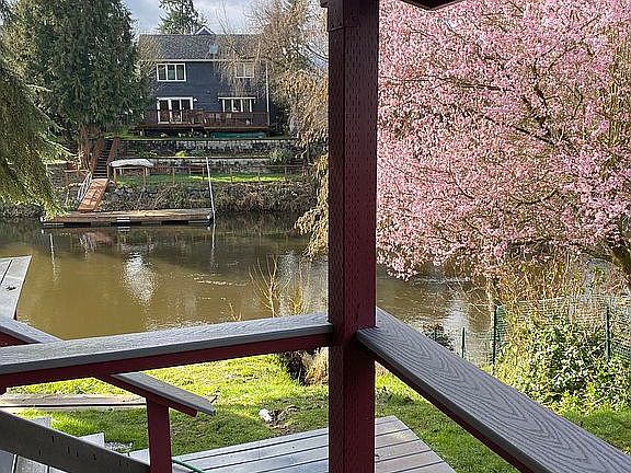 Beautiful mobile home park 55 or older community, Waterfront living on the Sammamish River. Sit out and watch the kayaks and paddle boarders go by on lg deck, Grt Rm feel with vaulted ceilings, stainless appliances, updated Home, AC for those warm days by the river. 2 bed plus den home with chef size kitchen. Bath off the master and walk-in closet. Small pets with approval. Incredible location, close to all, yet peaceful living along with the cranes, ducks, and sea others that entertain you.