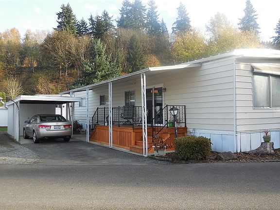 FINANCING AVAILABLE!!! Charming open, airy home in small friendly 55/over park. Well maintained with lap siding, new metal roof, gorgeous new deck, and beautiful master bathroom that would make Martha Stewart proud. 2 large bedrooms. Master has bathroom and walk in closet. Living and dining areas unusually large, with open kitchen and built in cabinets in dining room. Carport and additional parking with large storage shed Well managed park with easy access to Bothell, Seattle and the East Side.