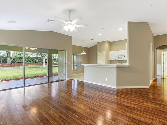 Fantastic home for a growing family! This move-in ready single family home w/ plenty of room to add a pool, offers over 1,800 sq. ft. of living space with a great room design. The laminate flooring (made in the USA) in addition to the vaulted ceilings & large panel sliders overlooking the lanai, give this home a wonderful open feel. There is NO carpeting in the entire home, and a REME HALO in-duct air purifier has been added to the energy efficient a/c unit for optimum air quality! In addition to the surround sound wiring in the family room, this home is considered a "connect home" w/ Cable & Cat 5/ethernet ports in each room. Wainscoting accented w/ the gorgeous flooring in the spacious master suite gives this room a cozy cottage feel, yet the room is big enough for a king size bed & a sitting area. With a split bedroom floor plan & a pocket door to the guest wing, there is privacy for each member of the family. The home has just been freshly painted on the exterior, a new disposal has been installed, and the energy saving washer & dryer are only 5yrs old. Situated in the non-gated neighborhood of Cypress Cay offers a community pool, playground, & play area.