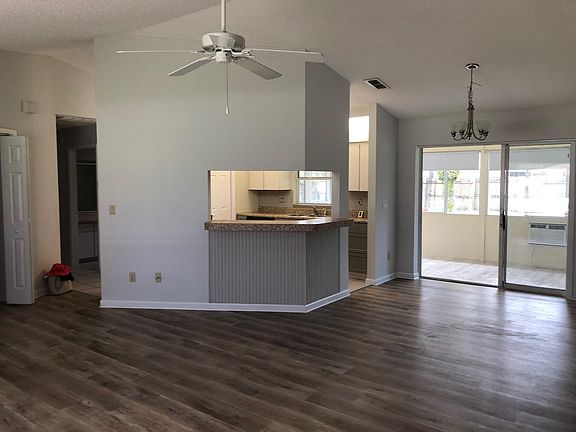 A single family house for lease in a very desirable neighborhood. Kitchen includes range, refrigerator, stove, dishwasher and a counter microwave, 2 Bedrooms, 2 Bathrooms (the master bathroom has a jetted tub). Laminate flooring in Master Bedroom and Living Room. Living room has cathedral ceiling. 2nd Bedroom has parquet floors. Kitchen and Bathroom have tiled flooring. Nice light fixtures. Washer and dryer hook-ups. Large Lanai. 2 car garage and a large yard which is partially fenced. Central Air/Heat and a wall A/C unit in Lanai. Very Clean. West of Mariner and South of Elgin. Utilities and Yard maintenance and Pest Control is the responsibility of the tenant. Absolutely NO Pets and NO Smoking in the house. Requirements to Move-in: 1st month's rent $1800 Last month's rent $1800 Security Deposit $1800 Total Move-In $5400 PLEASE Fill-out Application on Zillow