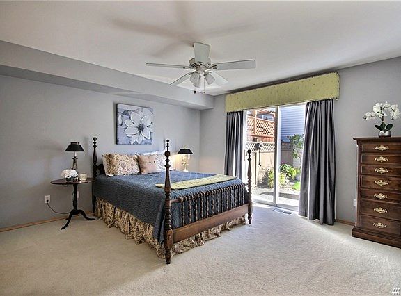 Welcome to your Private Oasis! This spacious two level, corner-unit Townhome has space & privacy! Peaceful Master BR on Main with 5 pc En-Suite bath, & His/Hers closets; Sizable LR with Gas FP, formal DR w/cherry hardwoods, & Sunny Kitchen w/Walk-in Pantry. Upstairs boasts 3 large BR's, huge Family/Bonus Rm, Laundry, & Full Bath. You'll also enjoy the A/C, 2 Car Garage, Separate Storage Unit, Fully Fenced Backyard w/Patio, & On-Site Athletic Court & Playground. Close to Boeing, I-5 & Shopping!