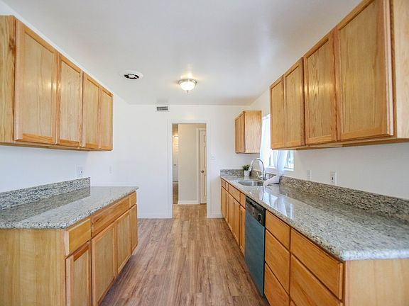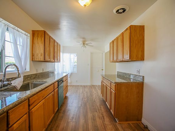 Move in Ready! This newly renovated single level 3 bed 2 bath home is a true must see! Welcoming living room is flooded with natural light, with its high ceilings and skylights, it really makes for a spacious main living quarters. Home has been remodeled through out, including fresh flooring and paint. Kitchen with recess lights, leads to inside laundry area with washer/dryer hook ups, guest bath with shower, and guest bedroom. On the other side of the house we have 2 nice sized bedrooms with mirrored closets and ceiling fans, and a full guest bathroom. Large tranquil backyard that is well maintained and perfect for outside gatherings.