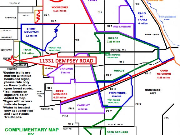 Horse Property across the paved country road is 25000 acre Croom Forest - miles of horse, off-road biking and hiking trails. Within biking distance to the Withlacoochee State Bike Trail 46 mile paved trail. Also a few miles from the Withlacoochee River and Silver Lake for boating or fishing folks. Renter pays all utilities