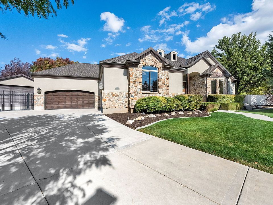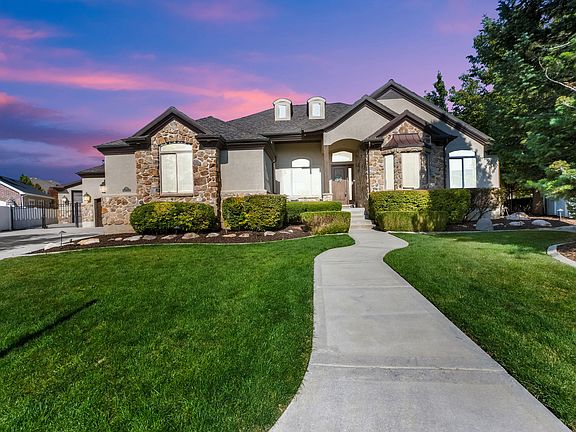 Award-Winning Luxury Executive Home Voted Best of Show and People's Choice in the 1999 Salt Lake Parade of Homes, this stunning residence is a true standout. From the moment you enter, soaring windows, vaulted ceilings, walnut hardwood, and travertine floors set the tone. The main level offers an elegant executive study, grand owner's suite with spa-like bath, double vanity and walk in closet and guest suite. Gourmet kitchen with granite countertops, gas cooktop, stainless steel appliances, and walk-in pantry. Main floor laundry and mud room with lockers. The great room with vaulted ceilings is anchored by a natural stone fireplace which flows effortlessly to outdoor living. The entertainer's dream continues in the fully finished basement with theater-ready great room, second kitchen, three very spacious bedrooms with walk in closets, full bath, and second laundry. Large storage room with built in shelves. Pool table included. 2 furnaces & water heaters. Car lovers and hobbyists will appreciate two oversized attached two-car garages, plus a heated detached garage with suspended floor and private exercise/dance studio below. 608 sq ft included in basement sq ft. Beautifully landscaped cul-de-sac lot is a private oasis with mature trees, 20' x 50' gunite salt water pool with slide, spa & Shamu shelf, stamped concrete patio, and a pool house with 1/2 bath. Lighted sport court. New lifetime roof. Located near the Jordan River Trail that spans from Utah County to Davis County with playgrounds and fishing pond! This home is an absolute delight!