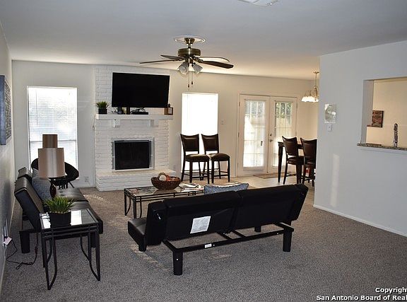 NEWLY UPDATED CUTE 1-STORY WITH A MODERN TWIST. NEW PAINT AND CARPET THROUGHOUT. UPDATED KITCHEN & BATHROOMS WITH NEW FLOORING AND GRANITE COUNTER TOPS. NEW STOVE AND DISHWASHER. HUGE DOVE-WHITE FIREPLACE IN LIVING-ROOM. FRENCH DOORS OPEN TO LARGE BACK YARD, GREAT FOR ENTERTAINING. VERY WELL MAINTAINED HOME. MOVE-IN-READY. EASY ACCESS TO MAJOR HWYS - I10, 410 & 1604. JUST MINS FROM MAJOR RETAIL SHOPS, UTSA, USAA FORT SAM AND LACKLAND AFB.