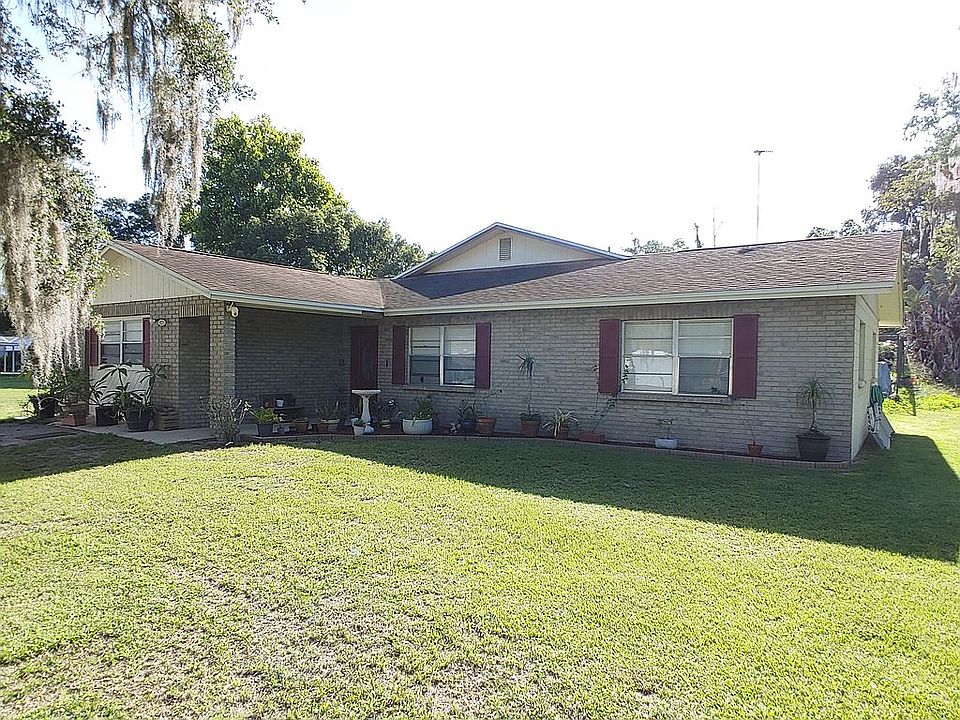 The home is constructed of concrete block with tan stucco brick finish on the front wall.