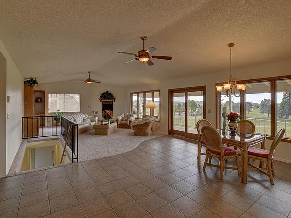 On the Golf course with super views. Extended covered deck and almost never a golf ball. One of the best locations on the golf course next to a tee. Large island kitchen with upgraded raised panel cabinets dual islands. Spacious room with formal dining and wood fireplace. Hugh laundry room with loads of storage on the main level. Newer carpet and tile flooring throughout. 2 bedrooms and 2 baths on main level with a lower level 2nd master suite with Swedish Sauna and a game room + a golf cart garage/storage. Perfect for 2 family living. Fruit trees in the back and RV parking concrete pad with hookups on the side.