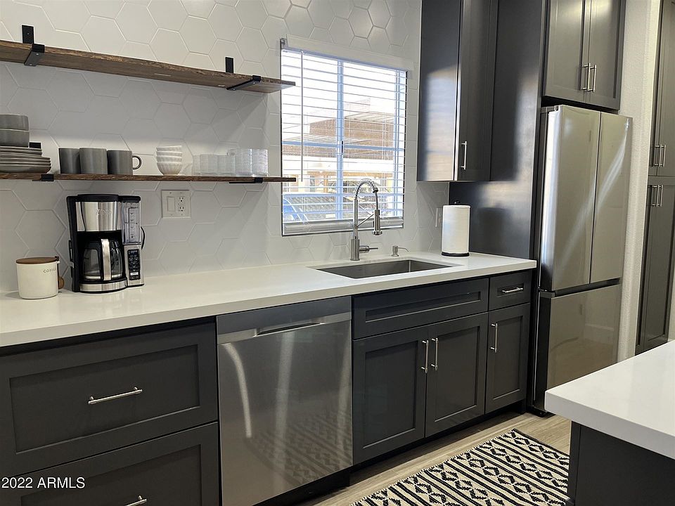 Stunning is the best way to describe this remodeled 3 bedroom & 2 bath home. Owner spared no expense in making this a very comfortable and tasteful ''Home Away From Home''. Brand new EVERYTHING. Upscale furnishings from Crate & Barrel and the like, luxury linens, full size washer and dryer, wine/beverage fridge and every item you need for your stay! Community has 2 pools, workout facility, tennis courts and is located so near the 101 that access to everything and everywhere is a breeze.