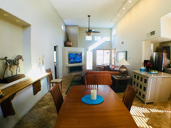 FURNISHED GROUND FLOOR condo in quiet neighborhood, backs up to paved trail network. Min.8 month lease preferred, available to year end 2025. High ceilings, tons of natural light and unique interior features. 3rd bedroom furnished as home office / den. TWO private patios back up to natural area. Condo complex features pool/ hot tub are just steps away, fitness room, tennis court. Close to restaurants, shopping, HONOR HEALTH CAMPUS, golf courses. Stainless appliances, granite countertops. Make this your Scottsdale getaway. Electrical included in rent. Why settle for the ordinary? Unique architecture and interior art. A PREMIUM location in this condominium complex. 8 month minimum lease preferred, available up to year end 2025. No smoking allowed. Landlord pays electrical / condo dues / trash. Carport Parking adjacent to unit. No pets. $200 cleaning fee, 1 month damage deposit.