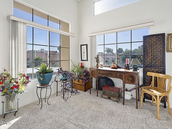 The South-facing orientation fills the home with winter sunlight & provides shade from the harsh Arizona summer heat. The floor plan offers a desirable split layout! And is equipped with new AC unit!