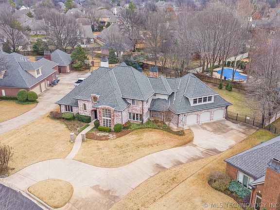 One owner home! Jenks Schools, 3car garage. Study w/built-ins, His & Her sinks & toilets + 4 closets in Master bath. 2 lg laundry rooms, Safe room by Master. newly painted In & Out, Kitchen updated w/White cabinets & subway tile, new fixtures & hardware. Huge walk-in Pantry w/cooktops. Refinished Hardwoods down. Gameroom Up w/New woodlook vinyl. CoveredPatio w/ fireplace & hookup for gas grill. New epoxied Garage w/ Wall of shelves. 3 half baths. Fireplaces in Family, Formal, Master & Patio! Agent/owner