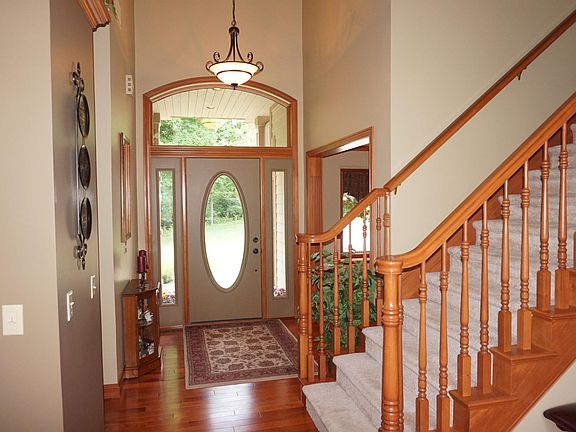 Beautiful home in a serene setting on a wooded lot! One owner home on 3 acres (secluded & private) with lots of extras! This home has lots of natural light, hickory hardwood floors, 4 bedrooms plus a loft, 3.5 baths, solid poplar doors & trim, granite counter tops throughout, stainless steel appliances, 2 gas fireplaces, walk out lower level, no sump pump needed, 6” exterior walls foamed, Anderson windows, 5 year old tear-off roof, 12’x16’ shed, 5 car garage (or 3 car garage with spacious workshop – heated & cooled) also, has a huge walk-up attic. The master en suite porcelain tiled bathroom with a walk-in shower has no curb & no door with heated floors & heated towel rack. In the lower level there is a family room with an Olhausen pool table for entertaining, a bonus room and a storage room or just enjoy the tranquility of your surroundings on the screened in porch. Come see for yourself and appreciate all that this home has to offer. It is only 5 minutes from PRMC, I-69 and all the amenities that the Dupont corridor has to offer.