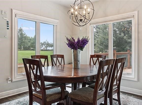 This is THE ONE you've been waiting for! Updates abound in this former model -- gorgeous new hardwoods throughout the entire first floor, all new windows above grade, new designer stair carpet and a hardwood landing at the bedroom level, all new carpet upstairs, fresh interior paint, newer HVAC (both units only 5 years old), newer expanded-size deck, newer appliances (that fantastic fridge in kitchen stays with the home!!) and light fixtures. During ownership the sellers have also finished the basement, updated the landscaping, added a gas line for the kitchen cooktop -- the list goes on and on! Prepare to be stunned by the two-story entry and great room with floor-to-ceiling windows. An open floor plan makes for easy entertaining, and a large hearth room and breakfast room supplement the formal dining area. Four large bedrooms upstairs, all with direct bath access and walk-in closets. Fifth bedroom in finished lower level plus bath and theatre/rec rooms + plenty of unfinished storage. Enjoy summer evenings on the deck -- an established tree line provides privacy and a fenced yard provides plenty of space for kids or pups to play. In-demand schools are within close proximity with ONW HS in easy walking distance. Super location close to shopping/retail and the K7 corridor. 25 minutes to downtown or just about anywhere else in the metro. Why build when you can make this spacious, updated home yours for far less than new construction? Welcome home! 2022-06-22