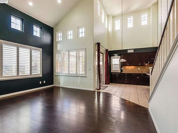 Freshly painted interior with neutral colors. Custom tile work at entry and hallway. Plantation shutters in living and dining room. Dramatic high ceiling in kitchen and family room. Laminate wood flooring downstairs. Kitchen features slab granite counter, gas cook top, and center island. Breakfast nook off kitchen with sliding doors leading to sunny and open backyard. Brand new premium carpet in all bedrooms and staircases. Master bath features tub and separate shower. Walk in closet with custom made closet organizer.
