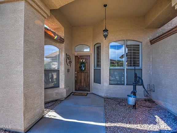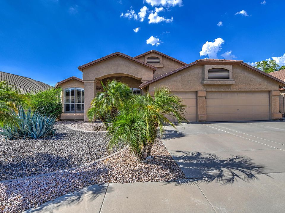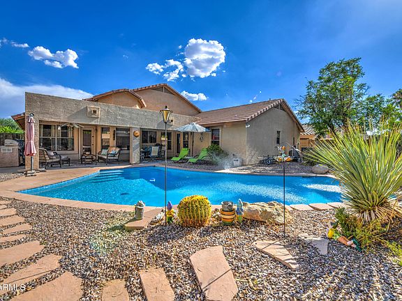 Welcome home! Three bedroom, plus den home with three car garage and pool in Mesa with Gilbert schools. Formal living and dining rooms at entry. Kitchen is open to the family room and nook area. Kitchen features center island, walk in pantry and newer appliances. Primary suite has en-suite bathroom with double sinks, garden tub, walk in shower and walk in closet. Two guest bedrooms, den and guest bathroom. Large backyard with covered patio, built in BBQ, and private pool with custom tiki water feature. Low maintenance front and back yards!